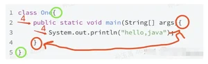 在认识什么是Java里的标识符之前,咱们还是先把上节课中的那段代码拿过来复习一下,如下: