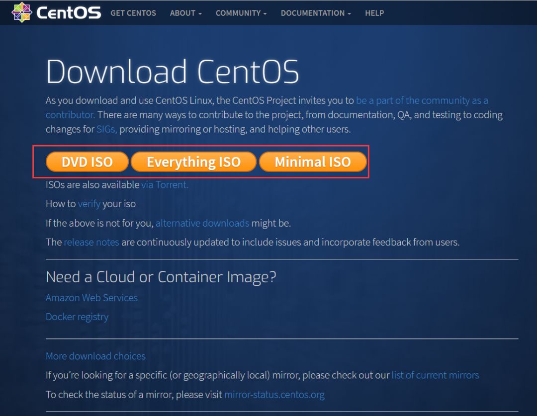 从官网,可以看出提供了三种类型的CentOS镜像: