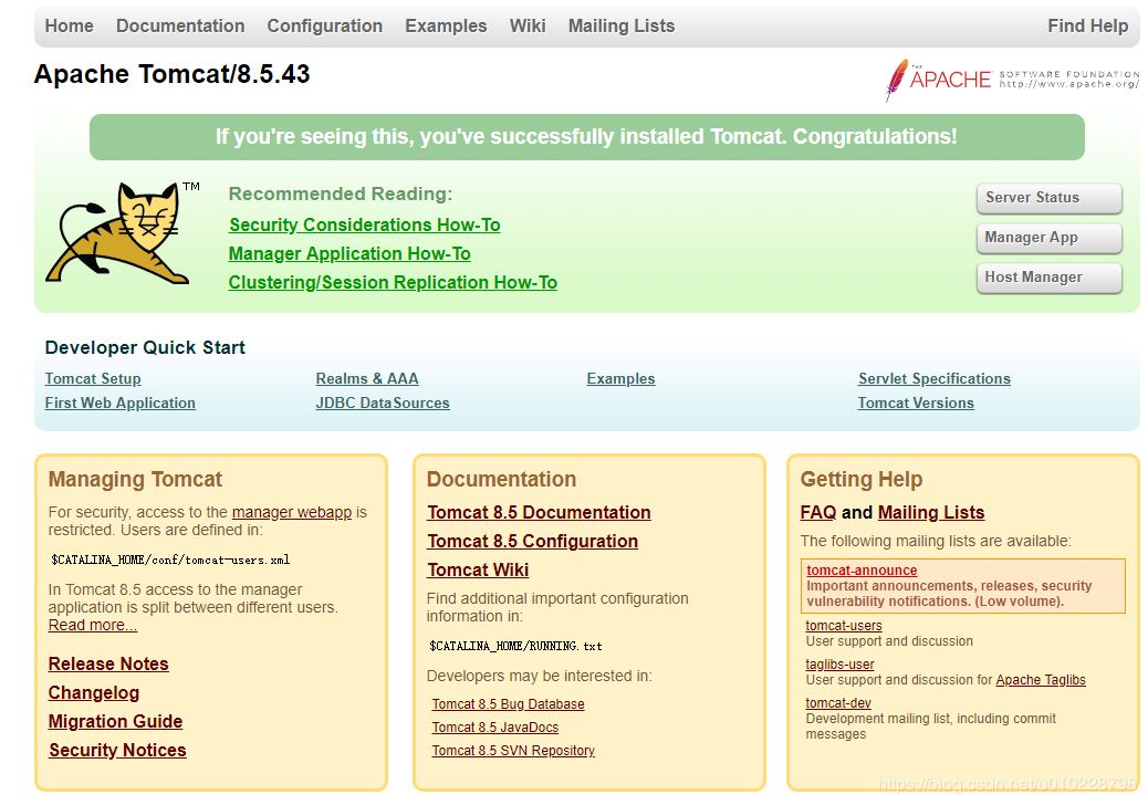 tar -zxvf apache-tomcat-8.5.43.tar.gz