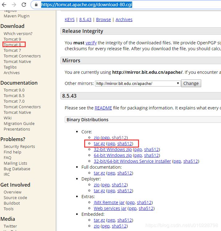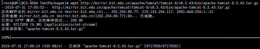 wget http://mirror.bit.edu.cn/apache/tomcat/tomcat-8/v8.5.43/bin/apache-tomcat-8.5.43.tar.gz