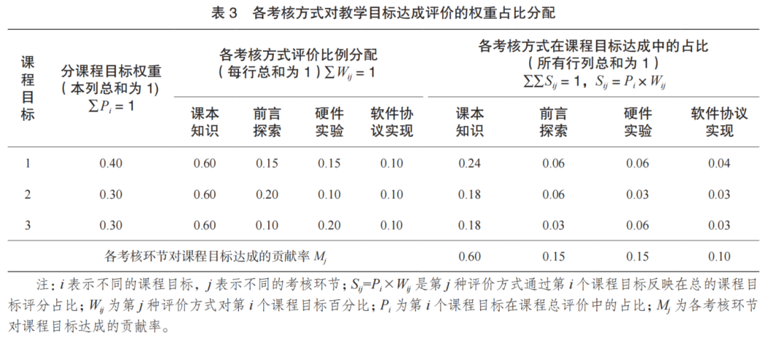 其次,分配各考核方式对思政目标达成的权重占比,见表 3 。
