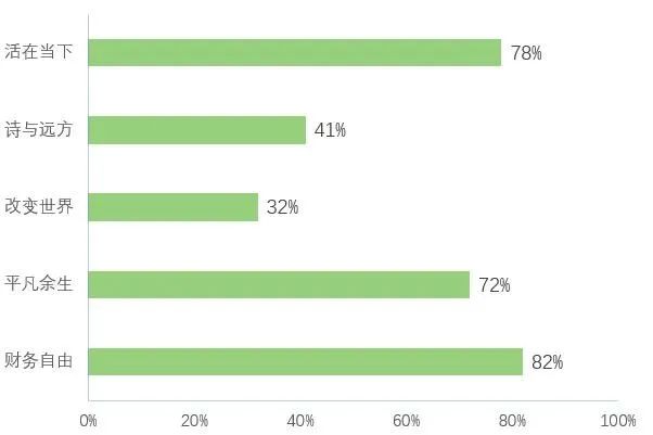在调查显示中,82%的程序员的终极理想是实现财务自由。除了暴富梦,不少程序员的想法较为现实,分别有78%和72%的程序员选择活在当下和平凡余生。