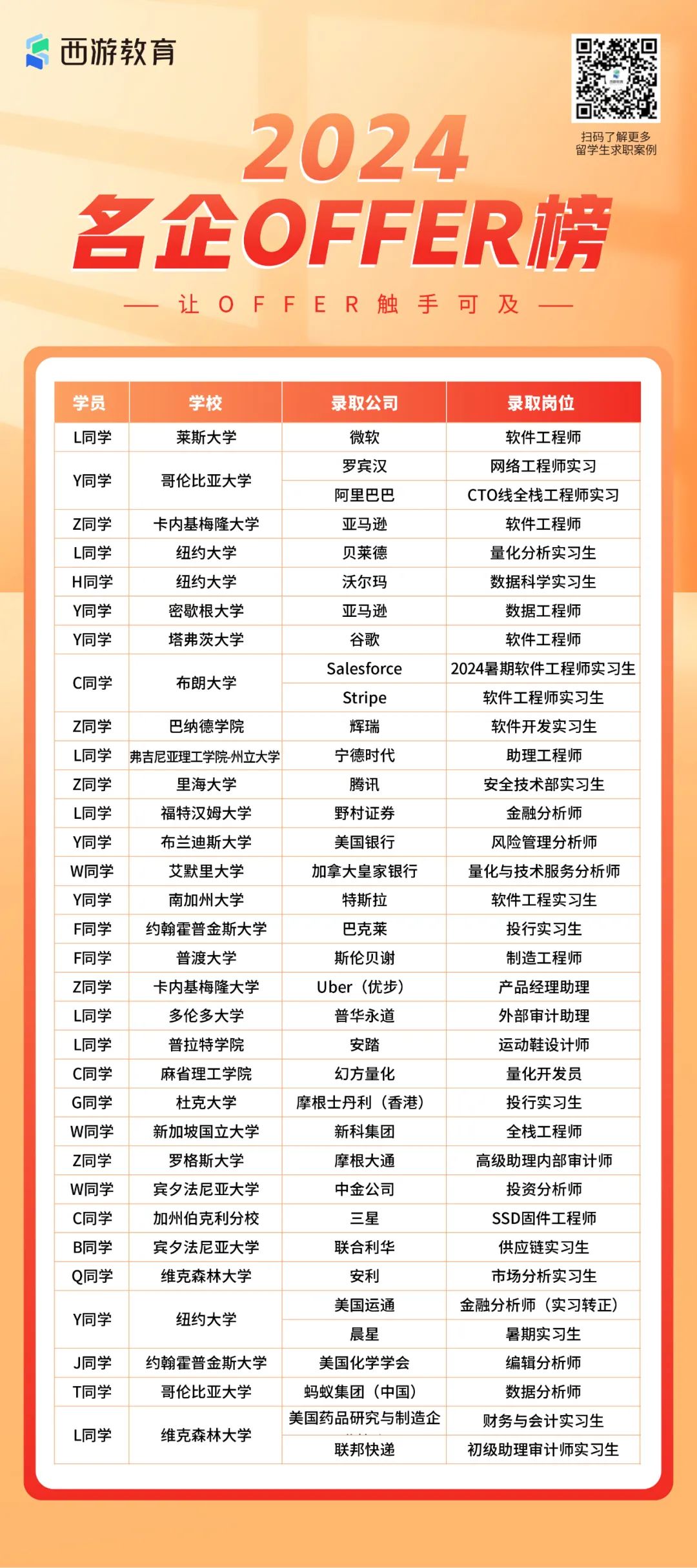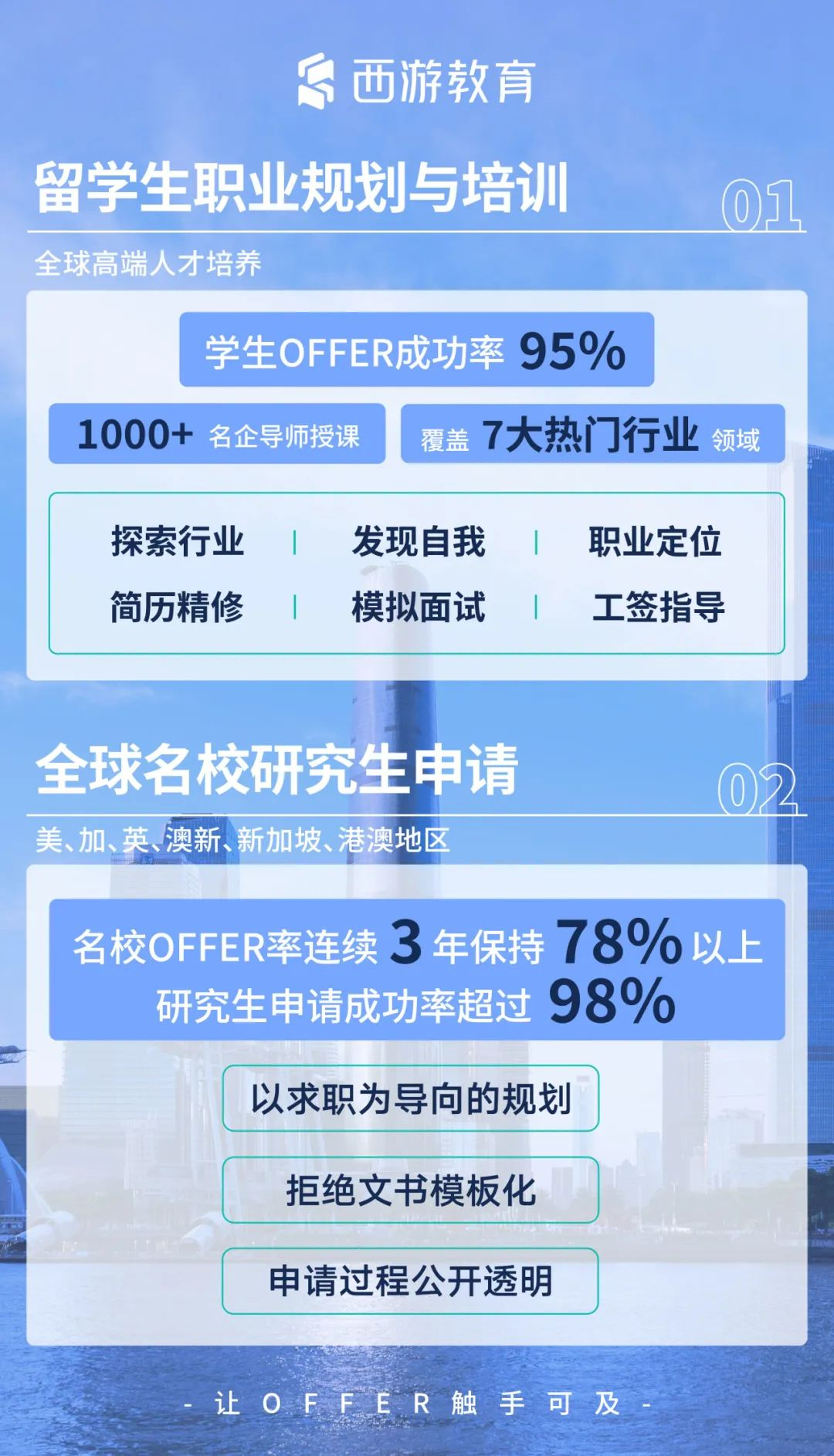 西游教育作为行业内首批从业者,经过八年的实践与沉淀,提炼出一套适用于大学生生涯规划的人才培养方案,成功解决大学生海外硕博留学及就业难题,实现了“让offer触手可及”的共同目标。