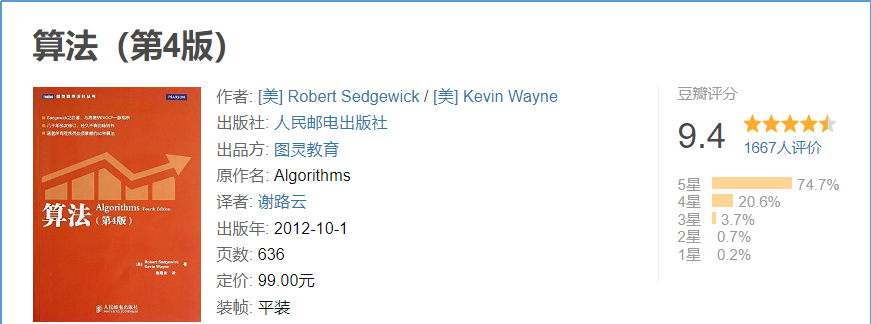 本书作为算法领域经典的参考书,全面介绍了关于算法和数据结构的必备知识,并特别针对排序、搜索、图处理和字符串处理进行了论述。第4版具体给出了每位程序员应知应会的50个算法,提供了实际代码,而且这些 Java 代码实现采用了模块化的编程风格,读者可以方便地加以改造。配套网站 algs4.cs.princeton.edu 提供了本书内容摘要以及相关代码、测试数据、编程练习、教学课件等资源。
