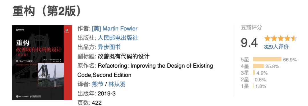 《重构:改善既有代码的设计》(中文版)解释重构的原理和**实践方式,并指出何时何地你应该开始挖掘你的代码以求改善。本书的核心是一份完整的重构名录,其中每一项都介绍一种经过实证的代码变换手法的动机和技术。某些项目如Extract Method和Move Field看起来可能很浅显,但不要掉以轻心,因为理解这类技术正是有条不紊地进行重构的关键。