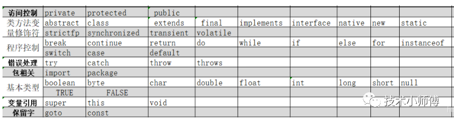 每一种语言都有很多关键字,Java语言的关键字主要有以下这些: