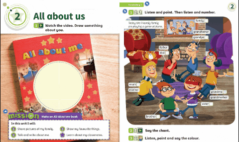 这套教材的每一个单元都是由单元任务、单词、故事对话、语法(内含听力)、单词和歌曲、语法和拼读、跨学科(非虚构文本)、文学(虚构文本)等多个部分组成。