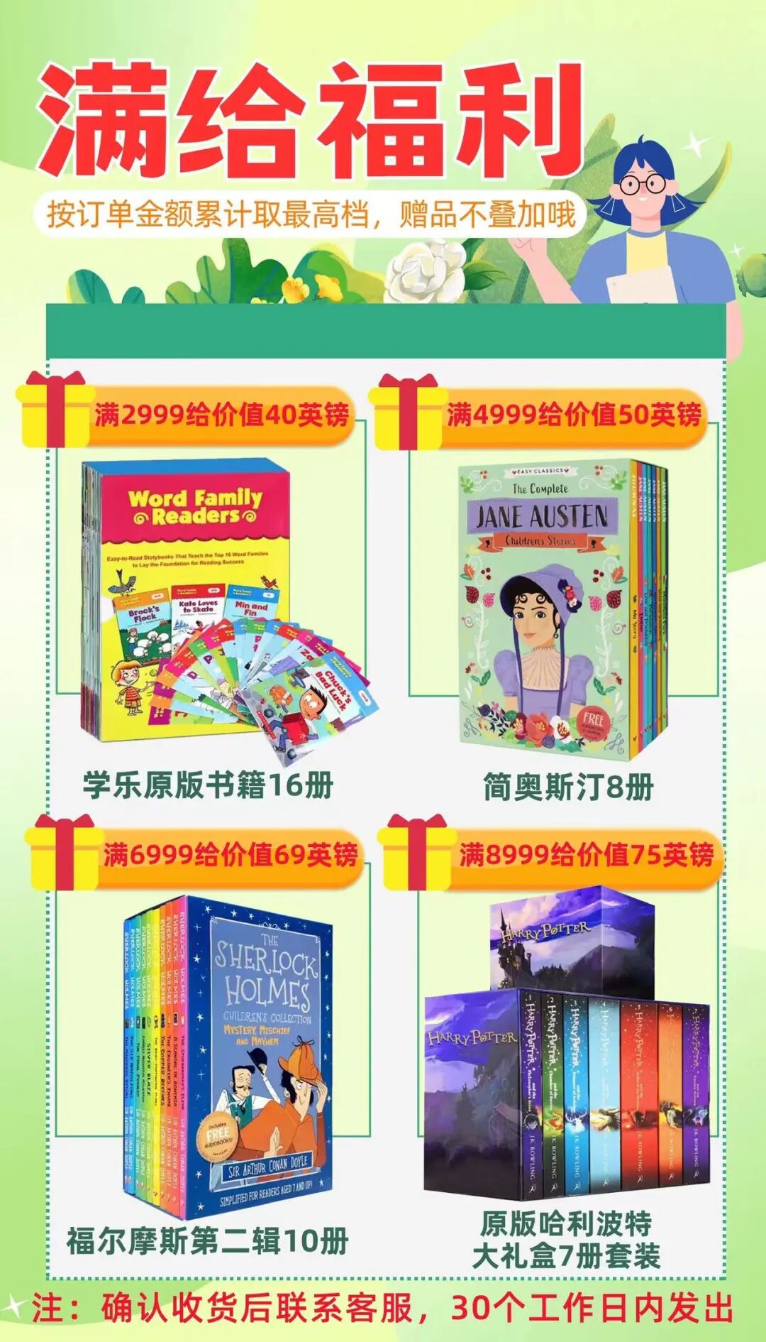满赠福利则是经典原版书,特别适合给孩子做为英文课外读物!