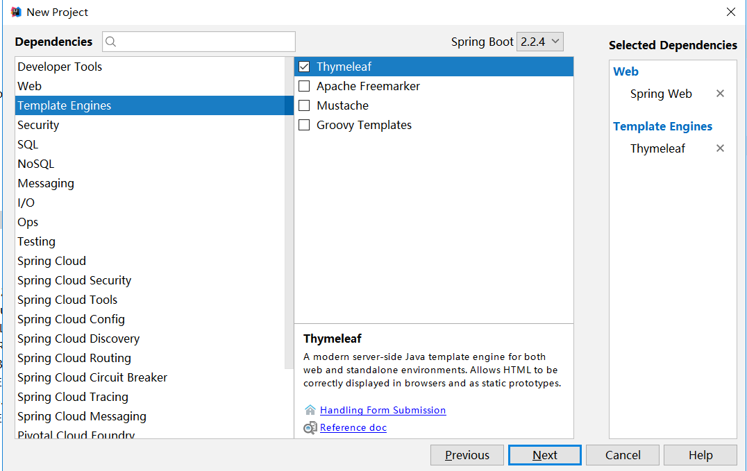 创建工程,添加Thymeleaf依赖和web依赖。如下图所示: