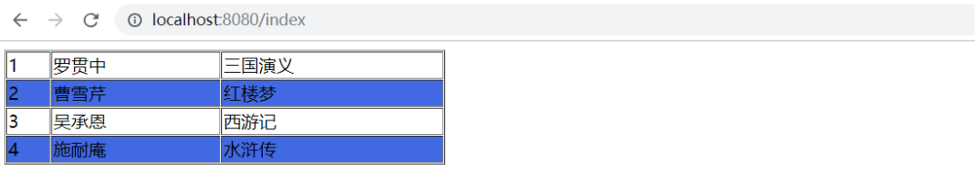 <tr th:each="book,index : ${list}" th:class="${index.odd}?'odd'">