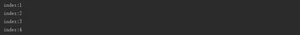 public class var { public static void main(String[] args){ for (int index = 0; index < 5; index++) { System.out.println("index:"+ index); } } }