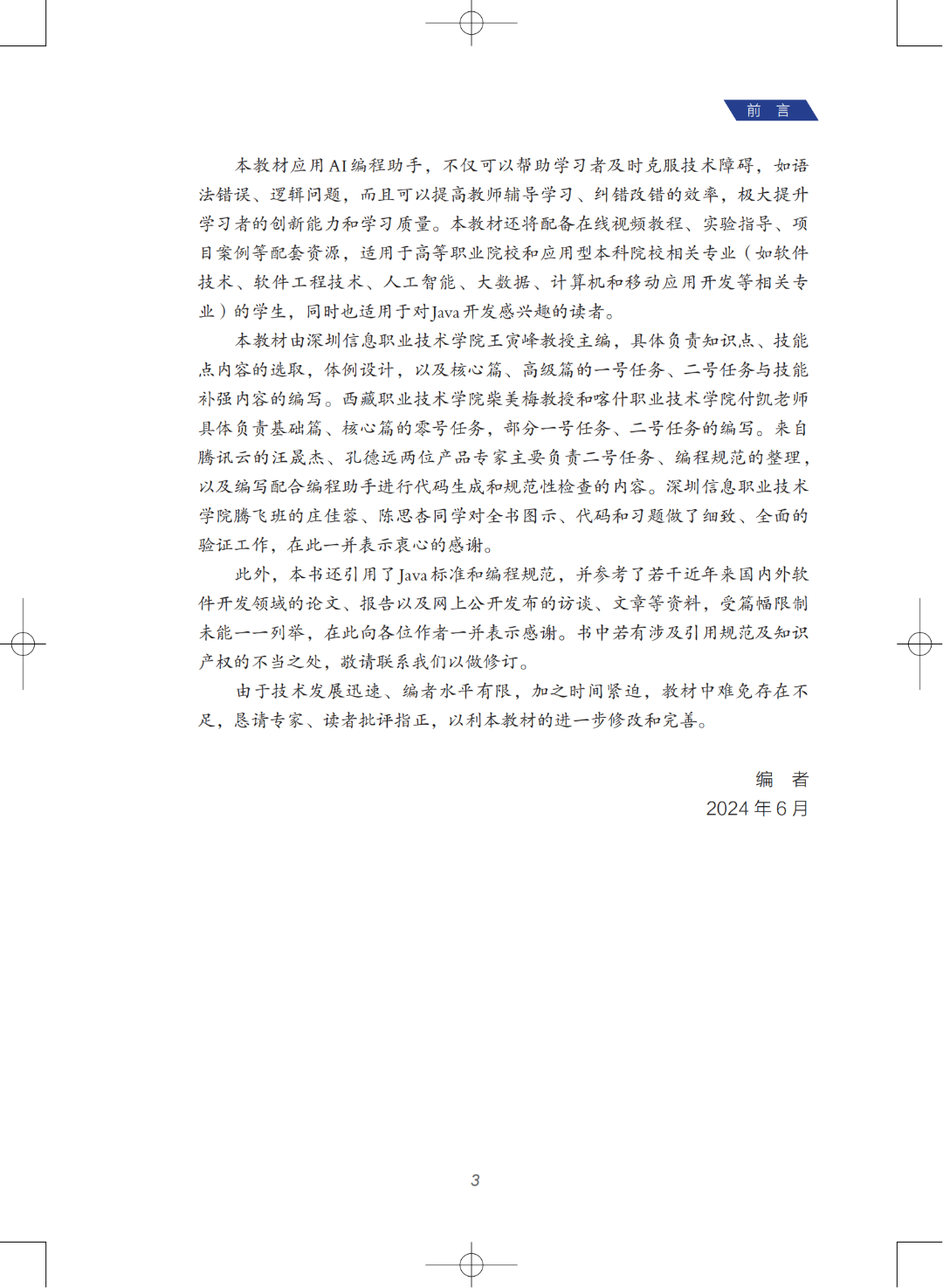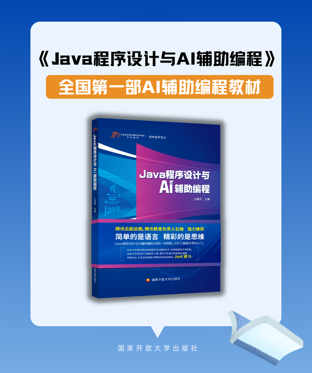 2024年9月26日,由国家开放大学出版社出版的全国首部AI辅助编程教材——《Java程序设计与AI辅助编程》,在深圳信息职业技术学院与腾讯云联合举办的产教融合教师发展研讨会暨云开发专题培训中正式面世。该教材由深圳信息职业技术学院的王寅峰教授担任主编,并汇聚了来自西藏职业技术学院、喀什职业技术学院及腾讯云的众多专家共同参编。