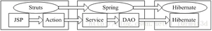 主要的数据流路径是:Struts->Spring->Hibernate(JSP->Action->Service->DAO->Hibernate)