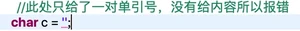 4.字符类型的定义为 char c = 'a'; 给字符类型的变量赋值只能是一个字符,不管是中文还是字母,只能是一个,不能是空字符,或者多个字符,例如 char c = '';或者char c = 'aa';都不对。