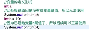 定义一个变量形式为:数据类型 变量名 [=初始值];中括号中代表可写可不写。