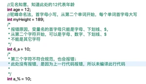 2.做到驼峰命名,首字母小写,变量名为多个单词时,除了第一个单词,其余单词首字母大写,例如 int myAge = 10;