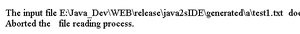 <strong>File</strong> inputFile = new <strong>File</strong>("test1.txt"); if (!inputFile.exists()) { System.out.println("The input file " + inputFile.getAbsolutePath() + " does not exist."); System.out.println("Aborted the file reading process."); return; } try (FileChannel fileChannel = new FileInputStream(inputFile).getChannel()) { ByteBuffer buffer = ByteBuffer.allocate(1024); while (fileChannel.read(buffer) > 0) { buffer.flip(); while (buffer.hasRemaining()) { byte b = buffer.get(); System.out.print((char) b); } buffer.clear(); } } catch (IOException e) { e.printStackTrace(); } } }