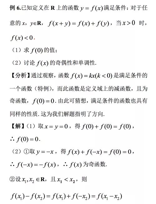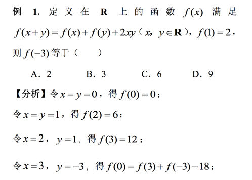 对于抽象函数,根据函数的概念和性质,通过观察与分析,将变量赋予特殊值,以简化函数,从而达到转化为要解决的问题的目的。