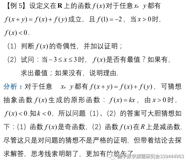 解决这类函数可以通过化抽象为具体的方法,即赋予恰当的数值或代数式,经过恰当的运算和推理加以解决。下面分类举例加以说明。