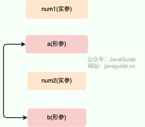 方法的参数 和 只是拷贝的实参 和 的地址。因此, 和 的互换只是拷贝的两个地址的互换罢了,并不会影响到实参 和 。